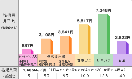 上図の様にお湯を作る費用が安い事です。